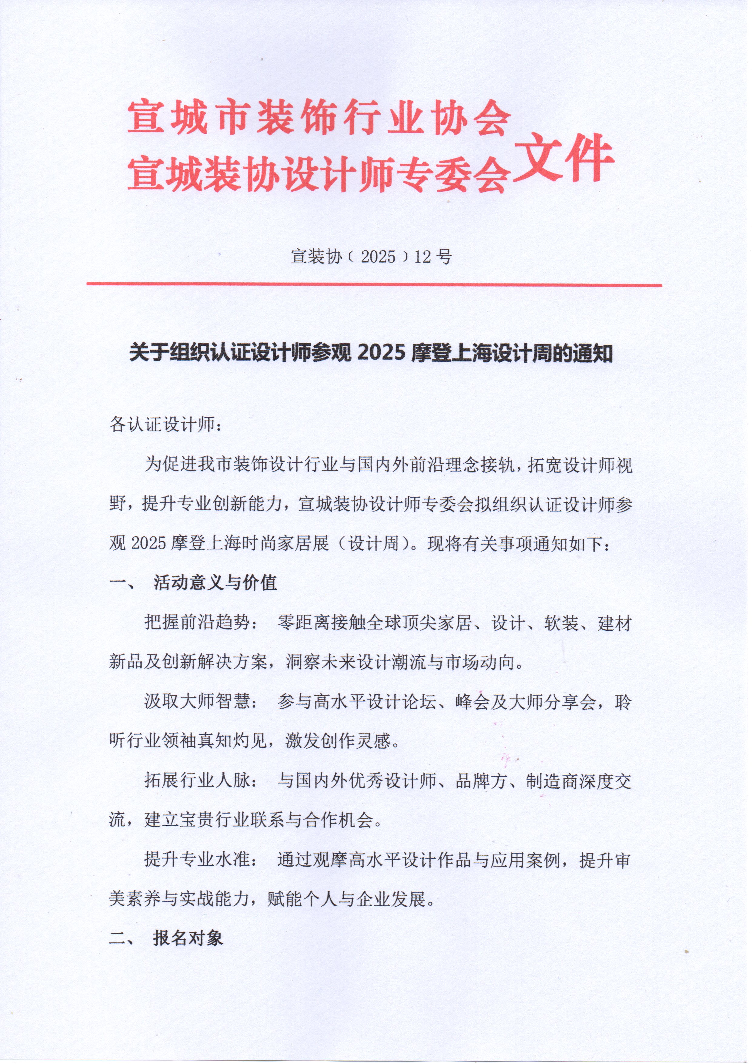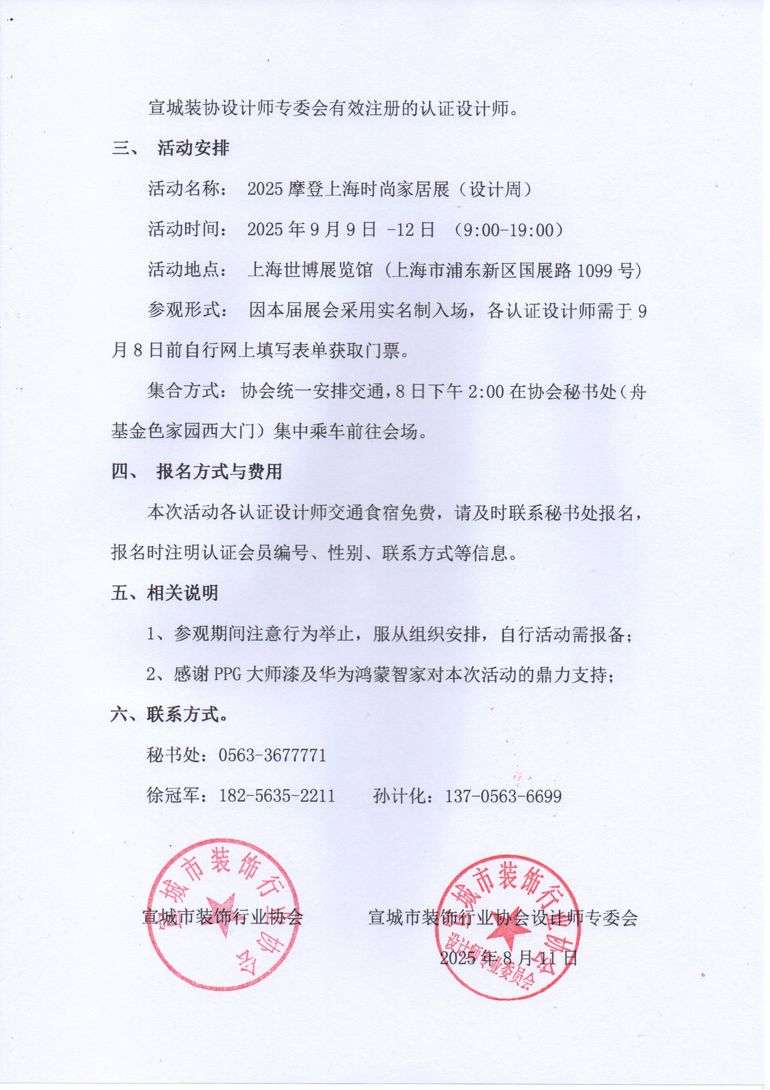 关于组织认证设计师参观2025摩登上海设计周的通知